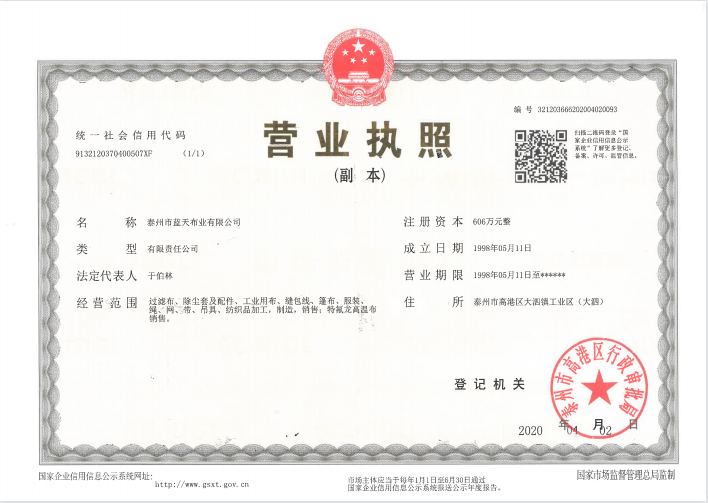 公司專業(yè)從事紡織業(yè)生產(chǎn)已三十多年,已成為一家從紡絲、織造、后整理到后加工一條龍的企業(yè)。公司位于江蘇省泰州市高港區(qū)大泗工業(yè)園區(qū),交通方便,占地100余畝,擁有現(xiàn)代化標(biāo)準(zhǔn)廠房,現(xiàn)有員工120人,年產(chǎn)過濾布300萬米、除塵布袋600萬米、縫包線、長(zhǎng)絲線4...